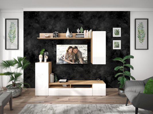 • Гостиная состоит из двух частей: монолитной напольной и навесной.