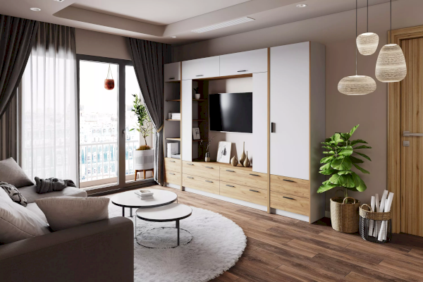 Шкаф-пенал для одежды из новой коллекции Оттавия представлен в двух цветах на выбор – белый и антрацит. Шкаф отлично подойдет в гостиную для любого современного интерьера, как скандинавского, так и урбанистического.
