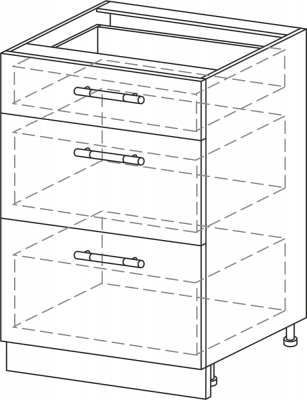 Аделия П3Я600 (пенал с 3 ящиками, ширина 600 мм) - фасад ТОЛЬКО шимо темный