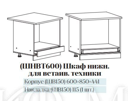 Высота нижних шкафов: 820 мм