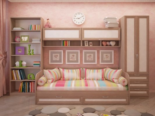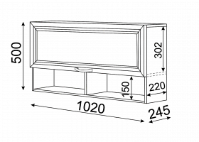 • Сумма длин двух полок (1020 мм + 1020 мм) составляет длину Кровати с ящиками М23 (2040 мм), что позволяет сформировать функциональное, но компактное пространство.