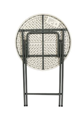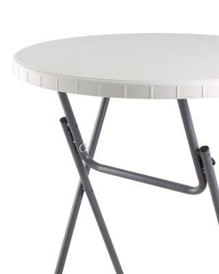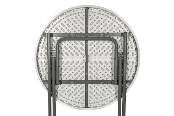 Диаметр стола 81 сантиметр обеспечивает комфортное размещение 3-4 человек, и для масштабного события может потребоваться несколько изделий. Однако благодаря складной конструкции модель займет минимум места при перевозке, благодаря чему столы можно перевезти небольшой партией и на легковом транспорте. Для каркаса используется стальная труба особой прочности, а столешница выполнена из 100% не переработанного полиэтилена HDPE (полиэтилен высокой плотности). Считается одним из более безопасных видов пластика. HDPE пластик выдерживает высокие нагрузки, не трескается при ударной нагрузке, эластичен в диапазоне температур от –70 до +100 °С.