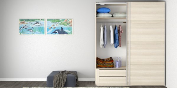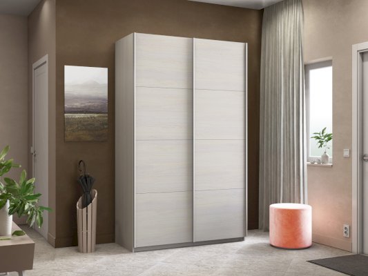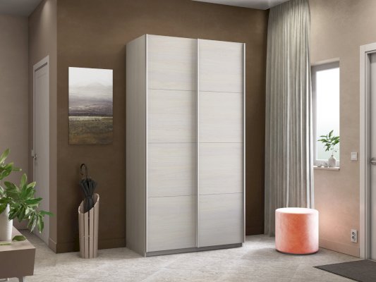 Серия «Прайм» отличается доступностью и функциональностью Навесные двери и лаконичная отделка фасадов создают прогрессивный дизайн. Подойдет тем, кто любит компактную и изящную мебель. Алюминиевые ручки и верхний ходовой профиль обеспечивают легкость и прочность конструкции. Многолетняя безупречная работа благодаря высококачественной немецкой фурнитуре Hettich. Прочная ПВХ-кромка толщиной до 1 мм защищает края от сколов и повреждений. Плавный ход дверей обеспечивает надежная система Hettich Top Line M. Дополнительно можно установить доводчики. Снаружи нет заглушек и винтов благодаря стяжечной системе крепления полок на флипперах, а корпус усилен эксцентриковыми стяжками. Навесные двери скрывают раздвижной механизм от глаз. Они надежно удерживаются в направляющих и не соскакивают. Каждая дверь поделена на 4 секции Секции расставляются в произвольном порядке, создавая новый дизайн фасада.