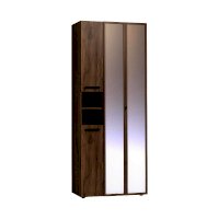 Nature 87 Шкаф для одежды и белья создаст все необходимые условия для хранения в прихожей верхней одежды и аксессуаров. В этом шкафу есть все необходимое для размещения верхней одежды: выдвижная штанга, верхняя полка, ряд регулируемых полок. Большая секция оснащена выдвижной штангой для развешивания пальто и курток на плечиках. Выдвижная штанга выдерживает вес до 10 кг. Один из зеркальных фасадов Контур открывается за ручку-петлю из черной экокожи, второй фасад - за раму. По желанию к модулю можно докупить Nature 94 Дополнительный модуль для Nature 87, который крепится под полку открытой ниши.