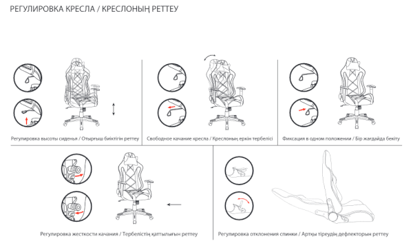 Модель оснащена механизмом качания «топ-ган» с регулировкой под вес пользователя и возможностью фиксации в рабочем положении.
