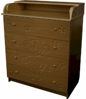 Вам понравится привлекательный внешний вид детского комода. На его лицевой части вы увидите углубленный декор в виде Мишки.