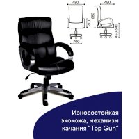 Надежный механизм качания "Top Gun" гарантирует хорошую поддержку спины и поясницы за счет возможности свободного качания с фиксацией в одном рабочем положении и регулировку угла наклона под вес сидящего.