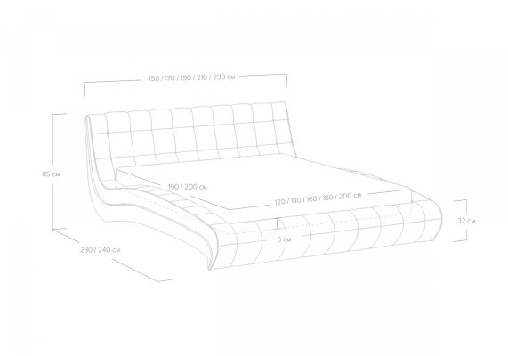 Размер спального места 80*200 / 90*200 / 120*200 / 140*200 / 160*200 / 180*200 / 200*200 / 90*190 / 120*190 / 140*190 / 160*190 / 180*190