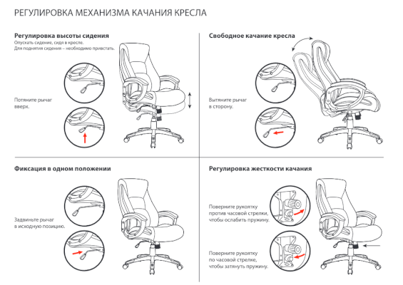 Тип механизма кресла: "топ-ган" качание с регулировкой под вес и фиксацией в 1 положении