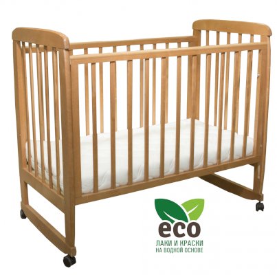 Кроватка "Соня 02" имеет механизм качания колесо-качалка. Колеса оснащены стопорами.