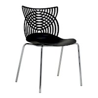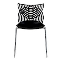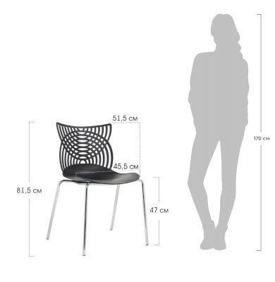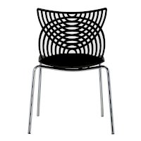 Стул Cat – это ультрасовременная модель мебели для смелых дизайнерских решений. Даже самый простой интерьер превратится в интерьер с обложки модного журнала. Необычная форма спинки в виде кошачьих ушек лежит в основе названия стула. Сидение и спинка стула изготовлены из прочного полипропилена стильного черного цвета, благодаря чему за стулом удобно ухаживать, используя влажную уборку, поэтому изделие отлично подойдет не только для жилого интерьера, но и для оснащения кафе и ресторанов. Хромированные утонченные ножки стула выглядят практически невесомыми, спинка стула имеет замысловатое переплетение, что позволяет сделать интерьер лёгким и не перегруженным деталями.