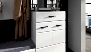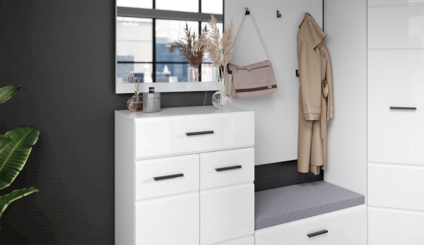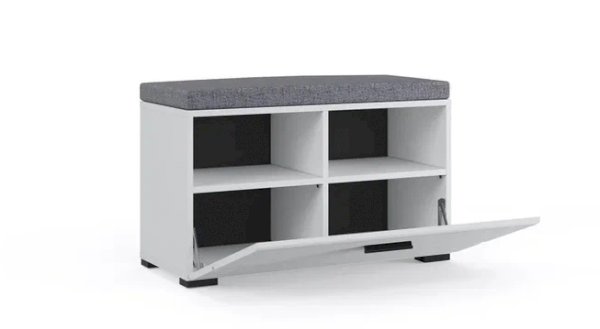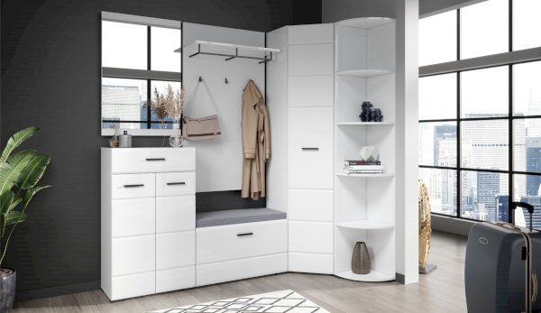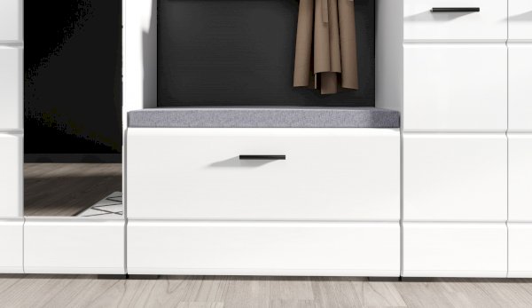 Тумба Йорк – это современная компактная модель для хранения повседневной обуви. Глянцевые белые фасады High Gloss из МДФ наполняют помещение светом и зрительно увеличивают пространство. Тумба оснащена вместительным отделением с полками, на крышке расположена съемная мягкая подушка, на которую удобно присесть во время переобувания.