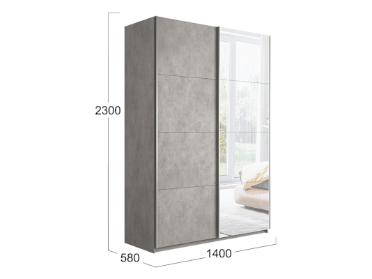 Двухдверный шкаф-купе с 1 зеркалом Траст 1400 (Трия)