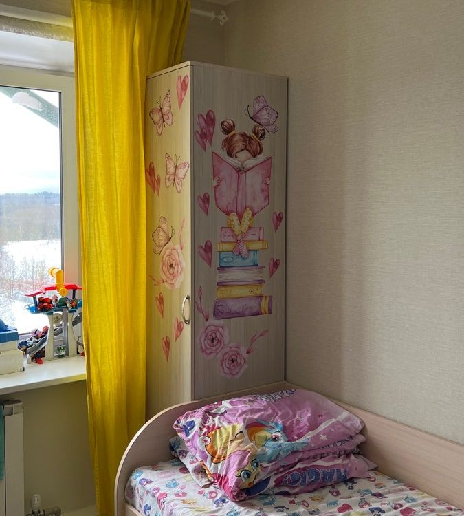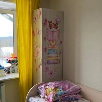 Купили в детскую. Шкаф вместительный, высокий. Дочке не понравилось, что он не цветной, но декоративные наклейки ситуацию исправили))) купили самый дешевый шкаф и не прогадали! Спасибо.
