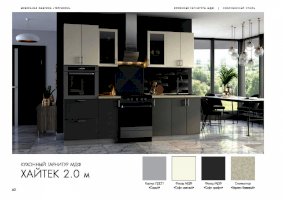Специально для поклонников ультрасовременных интерьеров создан кухонный гарнитур «Хайтек». Мебель наделена всеми характеристиками этого стиля: стремительными линиями, монохромными цветами, глянцевыми поверхностями, минималисткой фурнитурой. Декоративные элементы не используются. Благодаря этим особенностям дизайна комплект не загромождает пространство.