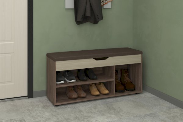 Удобная и функциональная тумба для прихожей, помимо полочки для обуви имеет поднимающееся сиденье с пространством под мелкие предметы. Ваши обувные щетки и крема теперь не будут разбросаны по прихожей, а будут аккуратно находиться на своем месте.
