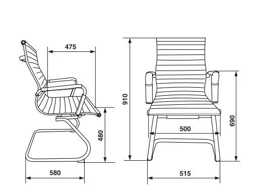Высота кресла: 910