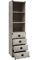 Оригинальный дизайн фасада, точно повторяющий текстуру отполированного дерева отлично впишется в современный интерьер. Дополняет общую композицию необыкновенная форма ручек и закругленные металлические края элементов мебели. В коллекцию Indiana входит большой ассортимент элементов мебели, который поможет создать интересный интерьер в комнате.